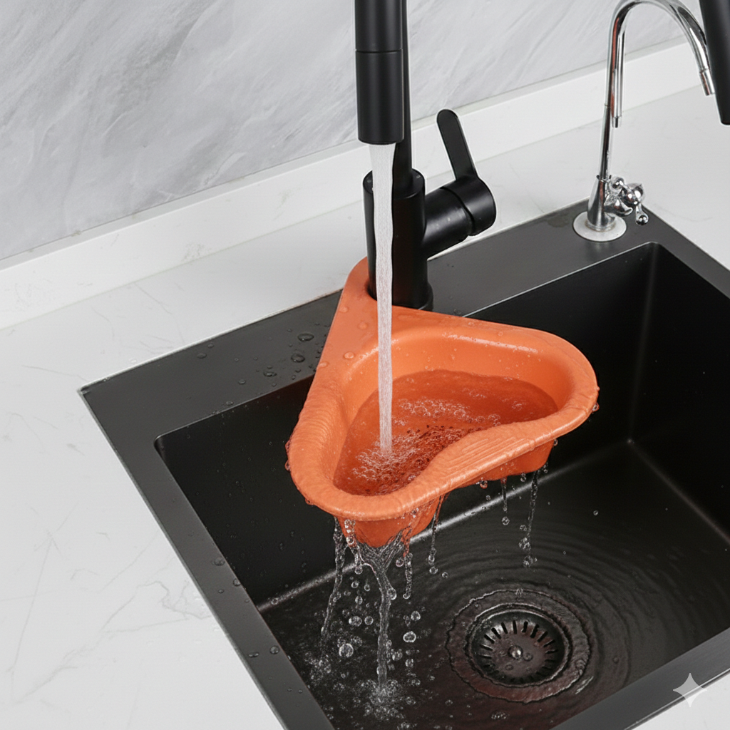 • 🧽 Keeps sponge, scrubber and soap organised